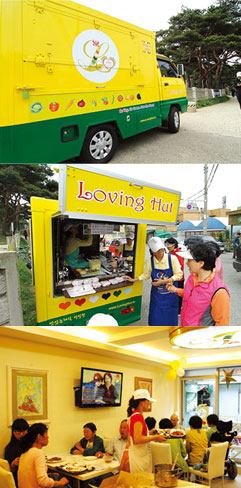 “Loving Hut”积极服务大众 【首尔/仁川讯】两辆货车在首尔和仁川小中心的世界会会员改造下,变身为亮黄色的“Loving Hut”餐车。为了介绍和推广植物性饮食,同修开车绕遍整个城市,在公共场所贩售纯素汉堡和纯素三明治。为了吸引过路民众尝试这种新式的健康饮食,有时还会提供免费试吃。曾经品尝过的人都称赞这些食物风味绝佳,超乎想像!