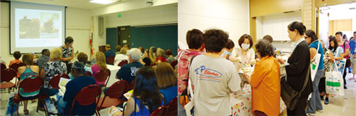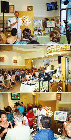 【洛杉矶讯】从今年年初起,洛杉矶的世界会会员就在当地的图书馆,免费为大众举办纯素烹饪班。经过2个月的示范,已有好几家图书馆邀请烹饪组,到他们的图书馆开办此类免费或免申请书的课程,甚至还主动在图书馆内张贴布告,并在当地的报纸刊登广告。目前这些邀约已排到2011年。这些课程办得非常成功,参加者都很高兴发现纯素佳肴如此美味。当中有很多人都是想茹素已有一段时间,但却不知如何开始。他们很兴奋地学习烹煮纯素菜肴,并在网路上搜寻纯素食谱,以便能在家尝试,并与家人亲友分享。 参考资料:http://www.VeganLosAngeles.com 4月20日至5月初,世界会会员应邀参加了一项“评审到你家”烹饪比赛,这是由在南加州播出的全新中文数位电视频道57.9--中旺电视(ZWTV)所举办的。我们的3个纯素烹饪组都获得优胜奖,而2位参加家常菜比赛的师兄则获得最佳人气奖。祈愿有更多注重健康的人学习制作可口的纯素菜肴,并前往当地的纯素餐厅用餐,如此便可轻松地转为采行爱心、环保的饮食方式。 呈现丰富文化的书展
