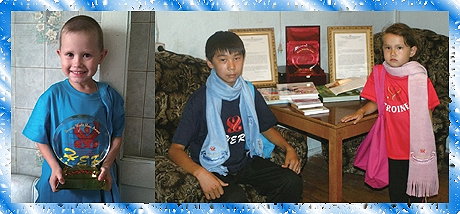 为了表扬他们杰出的爱心奉献、勇气、非凡毅力、智慧及救生能力,师父颁发“全球优秀英雄奖”给丹尼拉、莉姬和伊凡,由蒙古的世界会会员于黄金7年(2010年)7月24日致赠给这些可爱的孩子。每个小孩还获赠500美元礼金可以购买书籍和自己喜欢的物品,此外,还有英雄T恤、师父设计的彩色保暖围巾,以及师父的动物畅销书。这些礼物让他们笑逐颜开。 这些可爱的超级小英雄在如此危急的情况下,还能表现出无私爱心及机智反应,我们向他们致上由衷的敬意。祈愿在上天的恩典下,他们提振人心的爱心典范能启发更多人,对待彼此就像自己的亲人一般。