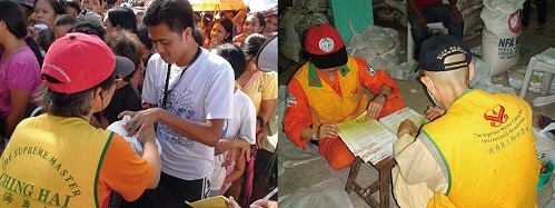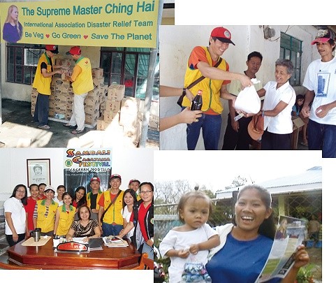 将近12月底时,菲律宾东部因豪雨而引发土石流和洪水,有40,656户家庭和208,443人受到波及。由菲律宾与福尔摩沙世界会会员组成的救援队,带着师父爱心捐赠的1万5千美元,于2011年1月12日抵达灾情惨重的阿尔拜省(Albay)的首府黎牙实比市(Legazpi),提供内含食物和卫生用品的救援包给每个不幸的家庭。次日,救援队则前往马尼托(Manito)、圣多明哥(Santo Domingo) 和马里利帕特(Malilipot)等邻近城镇探访约莫15个疏散中心,并分发总计1,600个救援包。接着,他们又搭船前往位于偏远的巴卡开岛(Bacacay)上的两个收容所,分发救援物资给那里的穷苦民众。 救援队诚挚感谢当地的社会福利发展局、省长办公室、省社会福利处和军方人员在救灾期间协助他们。 2011年2月初,菲律宾西南部的苏禄群岛(Sulu Archipelago)遭受长达一星期的猛烈暴雨袭击,导致山洪爆发,并掀起滔天的巨浪和一场暴风雨。霍洛岛(Jolo Island)上的水位高达9英尺,淹没了大部分地区,共有5,494户家庭受到影响。一得知这项消息,师父立刻捐赠2万美元,并指示世界会会员前往灾区传达她的爱,为最弱势的民众提供紧急援助。 2月13日,一支由福尔摩沙、韩国和当地的世界会会员所组成的救援队飞往三宝颜市(Zamboanga City),再搭船前往霍洛岛。经由上帝的安排,他们在船上分发“紧急求救”传单和小手册时结识两名乘客,愿意将救援队介绍给霍洛岛的社会福利局官员,以协助他们从事救援工作。接下来3天,在当地警察、政府官员与志工的热心协助下,救援队得以运送内含急需的食物、水和其他物资的救援包,给包括圣雷蒙多(San Raymundo)、中国码头(Chinese Pier)、阿斯图里亚斯(Asturias)、阿拉特(Alat)、图雷(Tulay)和塔库塔科(Takut-Takot)在内等许多村落的将近5千户家庭,这些受助家庭都很感激。 霍洛岛上的DXMM调幅广播电台并对这项救援行动进行报导,让我们的世界会会员有机会对岛上所有居民讲述气候变迁和纯素的解决之道。市长胡森.阿敏(Hussin U. Amin)也对这项全球暖化的重要讯息表示感兴趣,并说他会倡导此一讯息。救援队员们感谢上帝在他们执行任务时所做的美妙安排和庇佑。他们祈祷所有菲律宾人都能早日改采慈悲的植物性饮食,以避免未来又发生灾难。 3月18日,豪雨侵袭菲律宾中部的雷伊泰省(Leyte),造成洪水暴发及土石流,夺去了一家7口的性命,而保和省(Bohol)也有多人丧生。维萨亚斯群岛(Visayas)中部和南部共有7个省分受到波及。 福尔摩沙和菲律宾的世界会会员组成一支救援队,带着师父爱心捐赠的1万5千美元,于3月28日抵达雷伊泰省。他们根据当地官员的评估,提供了3,100份食物包,连同“紧急求救”传单分发给2个城市。在执行任务时,他们遇到当地DYBR苹果电台的播音员艾尔弗瑞多.杰卡先生(Alfredo D. Jaca),他很想获得更多有关气候变迁的讯息。因此同修送给他一本师父的最新著作《和平曙光:有机纯素化解全球危机》。2天后,这个当地的广播电台制播了一个长达2小时、有关气候变迁和纯素解决之道的节目。
