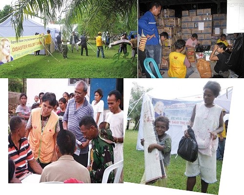 10月4日,印尼东部省分因豪雨导致洪水爆发并发生土石流,毁损了5个村庄数以千计的建筑物、桥梁和道路。有五千多位居民被迫撤离家园,暂时栖身在紧急避难所,至少有148人丧生、一百多人失踪,以及大约1千人受伤。 10月10日,在得知被安置于曼诺瓦里市(Manokwari)军分区司令部(Kodim)和山林管理训练营(Forestry Training Camp)的四千多位灾民急需食物后,雅加达小中心的世界会会员组成了一支救援队,运用师父爱心捐助的1万美元,以及当地同修捐赠的约5,700美元,在印尼红十字会协助下,提供营养的纯素晚餐给700位灾民,并分发当地服饰“纱笼”、驱虫剂、垫子、婴儿用品、卫生用品和学校用具等紧急物资。救援队还藉此机会分发“紧急求救”传单,并向当地人解释全球暖化的根本原因为肉食。许多人都非常关心气候危机,并渴望知道如何尽一分心力。 11月3日,中南帝汶县(South Central Timor)托伊拿萨镇(Toinasa)的斯基努村(Skinu)因连续豪雨骤然引发洪水泛滥,毁损了约180栋民宅,有三百五十多户家庭受到影响。雅加达小中心的一位代表立刻送去急需的食物、毯子和煤油。村长和灾民协调专员都非常感谢清海无上师的爱心关怀。