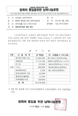 2010年8月底,连续3天豪雨造成鸭绿江泛滥成灾,淹没了中国的丹东和北韩的新义州一带。北韩动用军用直升机和船只前往救援,并从灾区疏散了五千多人,当地几乎所有的建筑物和农田都被水淹没。 清海无上师一得知消息,立即提供1万美元的紧急援助。南韩的世界会会员也捐赠大约4千美元。他们运用这些款项购买了36吨面粉,并装上2个货柜,准备从仁川港运送出去。9月18日,这批面粉透过定期对北韩提供援助的组织“南北交流协会”(South-North Sharing)送到北韩。 南北交流协会和面粉厂的员工,都对世界会给予北韩灾民的无条件爱心表示感激,也很高兴能参与其中。我们祈愿师父的爱心援助,能为北韩饱受水患所苦的灾民带来慰藉和希望。