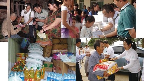 2010年10月1日和13日,中国海南先后遭遇百年不遇的强降雨和暴雨袭击,受灾人口达270多万。师父得知海南受灾的消息后,指示海南同修迅速前往灾区提供援助,同时拨款协助赈灾,同修及爱心人士也自发捐款合力赞助。 海南同修采购了速食面、棉被、大米、食用油、碗筷等灾民急需的物资,于10月16日到30日之间,冒着大雨将救灾物资分批运抵文昌、琼海、海口、万宁等重灾区,并亲手发放到灾民手中,此外又致赠慰问金给一些五保户。