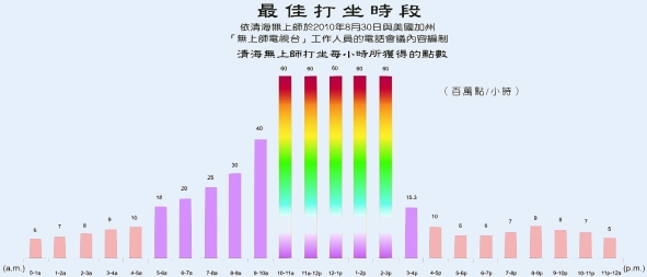 下列图表中的数字,是清海无上师在世界上最好的地点打坐每小时所获得的点数,以百万为单位。