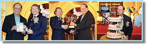 清海无上师因行程繁忙,不克出席,而由世界会理事长代表领奖,并转达师父对这份殊荣的感谢。世界会理事长也致赠师父的新书《和平曙光:有机纯素化解全球危机》、水晶玉兔、对联及万岁灯给罗慕斯先生。罗慕斯先生在致予师父的感谢函中,表达了深切的谢意。他提到:“值此我们对国家和人民的服务工作才刚起步,而新的挑战又纷至沓来之际,知道有像您这样的友人可以信靠与合作,以实现我们共同的愿望--让亚太地区维持长期和平与共兴共荣,并让所有人民享有更好的生活品质,真是令人倍感欣慰。” 颁奖典礼后,会场供应十多道美味的纯素佳肴,贵宾们都赞不绝口。最后,点着蜡烛的3层素糕悄然出现,在“祝您生日快乐”的歌声中,所有与会嘉宾为即将在3月18日满 83岁的罗慕斯先生提前庆生。 这场颁奖活动彰显了一位灵性导师和一位英明领袖“兼善天下”、“仁慈爱民”的胸怀,启发人们共同为世界和平与人类福祉而努力。