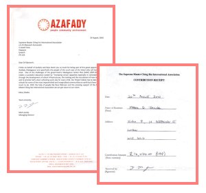 住在英国的伊朗裔财务分析师礼萨.帕克拉万(Reza Pakrava),为了想对世界有所回馈,在百忙中抽空前往马达加斯加,参加了一项志工招募计划。该计划是由英国的慈善组织“亚札法迪”(Azafady)所举办,旨在消弭这个非洲国家的贫穷、苦难和环境破坏。 由于那3周的体验让他深受感动,礼萨便开始自行发动募捐,好让该慈善组织能为当地的儿童兴建一所学校。他克服了一些困难险阻,一路上在善良的当地人帮助下,骑了1千公里的自行车,越过尼泊尔境内的喜马拉雅山。这项极具挑战的壮举,竟然帮他筹到了32,000美元的善款,几乎足够盖2所学校! 为了表彰礼萨.帕克拉万的高贵义举,清海无上师特别致函表达敬意,并附了一张25,000美元的支票,以帮助他在马达加斯加兴建第3所学校。黄金7年(2010年)8月30日,英国舍瑞的世界会会员们和“无上师电视台”的一组工作人员,拜会了礼萨和亚札法迪慈善组织的创办人兼常务董事马克.杰可布斯先生(Mark Jacobs),当面呈上这张支票和一些礼物。礼萨和马克满怀感恩的心,真诚地感激师父的慷慨捐赠。他们也感谢“无上师电视台”,让他们有机会介绍他们帮助马达加斯加人民的工作和目标。礼萨为该慈善组织募款的动机不断增强,他已计划下一次的冒险活动,那就是骑自行车穿越非洲的撒哈拉沙漠! 礼萨.帕克拉万先生,我们为您喝采!也为您的爱心和奉献精神起立鼓掌。祈愿阿拉保佑您和亚札法迪慈善组织,让您未来的每一次慈善冒险活动都能圆满成功。