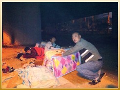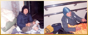 12月17日晚上,天气十分寒冷,同修前往南站附近探望二十多位街友,他们大多躲在用纸盒和塑胶布搭建的蜗居内。同修发送了棉大衣、防潮垫、棉鞋、手套、袜子等急需品。12月18日,在下雪的晚上,同修访视永定门河道附近的街友,并提供面包、速食面、素面肠、豆干和棉大衣等物品。