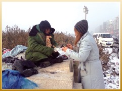 12月份以来,由于受到寒潮持续的影响,河南省遭遇近年来少见的“冷冬”天气。洛阳市的同修紧急采购了被褥和大衣,沿街寻找无家可归的街友发放,给予他们一些温暖。