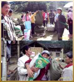 除了世界会总部运来的衣裤外,同修又购买了棉被、大米。由于考虑到山路崎岖难走,为了将物资安全运达,于是请乡政府协助安排运送车辆。10月6日,同修前往安邦村,每户发放米、棉被或衣裤。村民们都欢天喜地并感激不已。同修顺利完成任务,也非常欣喜,大家都沐浴在师父的圣爱中。