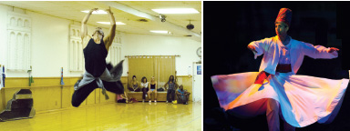 | ▲米格尔.裴瑞兹(Miguel Perez)在〈印心〉(Initiation)这首曲目中表演单人舞:在舞台上(上)和排练时(下) |  | ▲伊塔罗.艾尔格塔(Italo Elgueta)在〈真理、我执、灵魂和加持力〉(Truth, Ego, Soul and Blessings)这首曲目中表演苏菲派(Sufi)风格的舞蹈(中东) |  史朵莉女士在编舞方面的成就,大半要归功于她天生爱讲故事,从孩童时期就开始创作与家人、邻居有关的故事,还有就是她在获得犹他大学(University