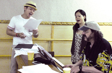 |  |  与一同演出的朴希瑟(纯素者)和音乐总监道格.卡撒罗斯一起排练