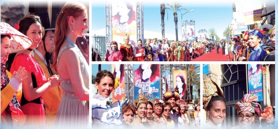 世界知名的作曲家、作家和表演者在音乐剧中展现精湛的才华,他们在接待人员的迎接下,步入美国加州洛杉矶的圣殿剧院。当这些艺术家和嘉宾目光烁烁、容光焕发地在灿烂的阳光下踏上红毯时,受到了接待组和来自全球各地、身着鲜艳传统服装的世界会会员热诚欢迎。