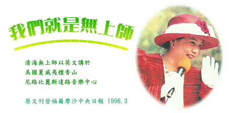 大家好吗?Aloha! (大众答:Aloha !)早上好吗?(大众答:好)早餐丰盛吗?我们吃一些我们认为对长养身体有用而必需的东西;只是有些食物,对我们的身心灵不但没有帮助,反而有毒害,而有些食物,则能帮助我们获得比生命更高等的东西。同样,开悟的法门很多,我们可以选择适合自己的法门修行,长养我们的灵魂,变成和上帝同一体。 这样讲会不会太严肃?我该不该先说几个笑话?不过,夏威夷的笑话我知道的不多。我昨天已经说过一个笑话,因为徒弟削减旅行预算,所以把我住的地方租到高速公路旁边去。你们都听过了!你们看报纸就知道,目前世界各地经济都不景气,所以,他们也砍我的旅行预算(师父笑),到哪里都租便宜的房子,连高速公路旁边也租,好吧!我就假装是“高速”开悟的人(大众笑),不会听到外面的声音。不过,那里真的满满光和音;半夜里的车灯射出来的光,和川流不息的车阵声;假装把车声当做海潮声,有时也蛮好玩的,没关系!不过,我也有特别的方法可以听到内在的声音,即使住在高速公路旁,对我们的修行也不会有什么影响,所以有一个殊胜法门是很必要的。吃素也是一样,并非我要告诉你们该怎么做,而是自古以来的明师们经过实验证实——这是让我们找到内边上帝、无上师最好的方法。 ★每件事都是上帝的旨意无上师是所有师父的师父,没有这个无上师力量的导引,我们不知道为何我们会在这里?应该做什么?不能确定所做的事是对?是错?不是我们不想做对,而是我们多数时候不知道上帝的旨意,不知道在不同的情况下该怎么做才好,所以我们才会弄错。我们听说什么都是上帝的旨意,即使掉根头发也都是上帝的安排,那为什么我们必须因所做过的事而受苦呢?圣经又说:“种什么因、得什么果”,那不又跟“上帝的安排”互相矛盾了吗?对我们不是太不公平了吗?不是不公平 ;不公平,但也公平;不公平的部分是,如果每件事都是上帝的旨意,为什么我们应该为我们所做的事受罚?公平是因为上帝也给了我们方法,去超越这些令人害怕的所谓惩罚,只是我们不知道如何使用,或是不想使用罢了!因为我们生生世世已经习惯安逸,我们只做我们想做的事情,只依自己的习惯,和从眼、耳、鼻、触摸等收集到的讯息来过生活,我们已经忘记上帝的戒律。 很多人问我:为什么要修行?为什么要打坐?事实上,不一定要坐着才能打坐,并非一定要坐着,躺下来也可以打坐,只不过我们躺下来时就真的“下来”了,懂吗?躺然后“掉下来”(大众笑),接着听到的就不是内在的声音,而是外面的鼾声(大众笑);看到的不是上帝或天堂,而是各式各样的梦,有时甚至做恶梦,让我们醒来以后还不舒服。坐着打坐比较不容易睡着,即使睡着了,摔到地上,也会马上惊醒过来,就算睡个五或十分钟,其它时间还是在打坐。睡觉和清醒的时候看到的境界不一样,我们睡觉时,有时在梦中所看到的境界,对日常生活非常有用或是预示未来的一些事,让我们能有所准备,万一是些不愉快的事,我们或许能避免,或是很严重的事情,我们能预做转圜。这些梦境有时是真的,但是人们很少能够分析这些梦境,而应用于日常生活之中。 到底是什么使人睡觉时做梦,而且这些梦这么有用或能预示未来及真实的事情?我们睡觉时,我们的灵体有时候可以接触到我们内在知识和安详的源头,头脑在此时并没有真正的睡着,我们从这个智慧宝库收集资料,头脑会记录一些下来,所以醒来以后还会记得某些东西,大多数时候我们只模糊记得做了梦,却不知道、不记得梦境里的细节。所以,如果我们可以把睡觉所得到的讯息,带来到清醒的状态时来用是比较好,打坐就是在睡觉的同时又能保持清醒,这样我们能有意识地、清楚地看到从这个智慧宝库中所收集到的讯息,然后有所领悟。所以,开悟的人才越来越有智慧,越快乐、满足,因为他知道该做什么。他的潜意识已经打开,可以知道过去世和未来的事情。不过那只是过渡的等级,还不算是最高的等级。你们听了可能觉得惊讶,一个人达到最高境界时,反而会回到无知(师父笑)。很失望,是吗?不用担心,这种“无知”不一样。 “无知”有两种,一种是愚昧无知,另一种是大智若愚。看起来相同,但实际上并不一样。好比从科学上来说,两种极端的现象看起来是一样,比方说,极黑暗或极光亮,我们都看不见。在极黑暗时,我们看不见任何光,而在极亮的光中,我们一样看不见光。两者看起来都像是暗的,但实际上并非如是。内在的光、最高智慧的光没有阴影和物质的实体,所以很难用肉眼看到。即使有时我们用智慧眼看到,仍然感觉好像肉眼会受伤一样。但是过一会我们就会习惯,会觉得好像平常的白天一样,不再感到刺眼。 ★大智若愚的圣人昨天有人问我:入定是什么感觉?他问:是否最高等级就是自己会变不见,感觉不到自己的身体和周围的环境等等。这种情形还不是最高的境界,最高境界是:你能像平常人一样过平常的生活,而又同时拥有超越头脑、超越宇宙一切事物的超意识,所以你的头脑有可能不知道这种情形,因此才说你会像“无知”的人,但你的灵魂、宇宙意识会处理每件事情,任何众生只要想到你,向你祈求或需要你帮忙,你都能听到、看到,并且帮他们解决问题,不用动到头脑。头脑就像一部电脑而已,所以如果用头脑做事,并没什么了不起。它的力量有限,不可能让我们无所不在。大智若愚就是这个意思,圣人
