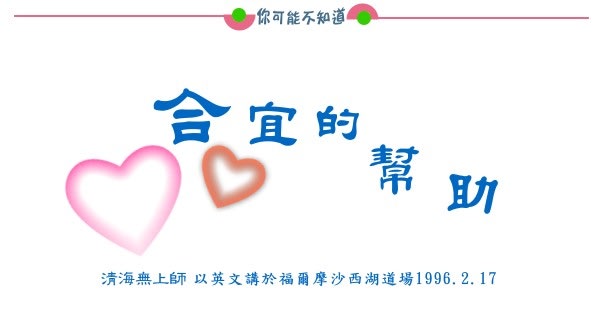 有些时候,当我们知道哪边有灾难发生,只要能帮得上忙得话,我们都会伸出援手。有时会将户头里面所有的钱全部拿来救助,对你们而言,这是一笔不小的数目。你们也许会认为师父背地里还有三、四个户头。事实不是这样,那是我们师徒当时所有的钱财。可是师父相信,上帝会再给师父。如果需要的话,师父什么都给。不需要的话,就只给他们必要的或是我们手头现有的东西。