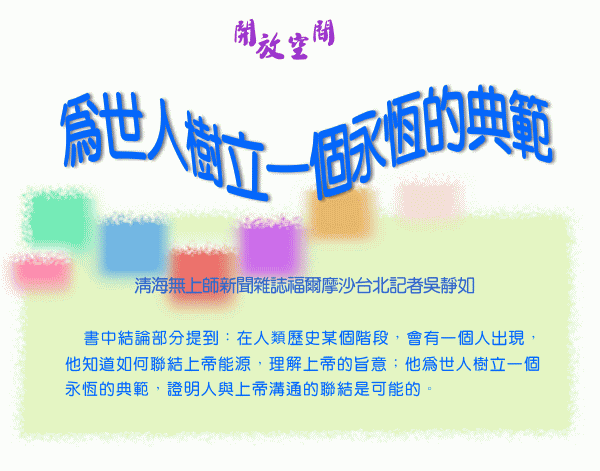 “最好让对美和光的知觉引领人们一路前进,在二十世纪最后数十年,人类对玄密意识( mystical consciousness )将普遍认为是可以实践的生活方式,人们知道把自己和周围的能联结在一起,最初的感觉是兴奋,接着是幸福,最后是爱。”