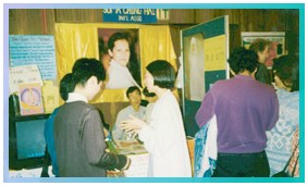 许多人登记索取新闻杂志,修习方便法的报名表格也被领取一空。一位年轻人惊讶的发现我们的样书和新闻杂志是完全免费赠阅的,连学方便法和印心也不收分文,令他留下深刻的印象。一位已收阅新闻杂志一段时间的女士感动的说:‘每当我遇到不如意时,师父的新闻就会寄到,及时给我帮助。’一位男士在和同修交谈时,得知每个修观音法门的人都有经典上记载开悟的体验,令他羡慕不已。他已持素多年,一直渴望得到究竟的法门,这次有幸得遇明师,终于如愿以偿。他并请同修为他家人讲解打坐的利益,他觉得师父的教理非常合逻辑,而自然而然地信服。