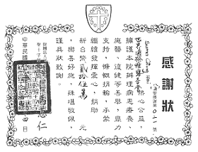 | 天主教私立圣十字架疗养院致赠之感谢状。 |