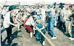 当天各组工作人员筹划出一连串欢乐活动,将平静的海岸点缀得更为多采多姿。活动项目琳琅满目,在花园之间有户外巴比Q区,许多外来游客见到素食烤料竟如此丰富味美,纷纷询问并向服务台采购;在沙滩上许多小同修兴高采烈的堆沙堡或将身子泡在海面上随海波晃漾,不亦乐乎;同修准备的沙滩活动也让参加者玩得满头大汗,比赛者与啦啦队皆卯足了劲,尽兴忘我。其实团体比赛的重点并非胜负输赢,重要的是个人与团体间的努力过程,在游戏中,大家也更能了解“团结力量大”,当群体的力量在进、退间步调一致、精神合一,由个体凝聚成一体时,则无事不成。