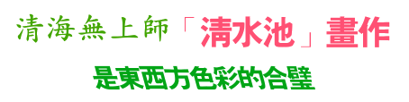 清海无上师的清水池汇集了柔和的色彩,所有清海无上师的画作都不带牵强和着力处,而恬然如花朵的绽放。清海无上师创造了绘画界的新语言:一首韵律丰富、情意盈注的自由诗歌。