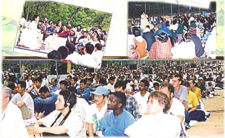 我和我的嫂嫂到韩国汉城参加国际禅五,我们两个都是第一次参加国际禅也是首次见到敬爱的师父。我们在半夜抵达、摸黑搭帐篷,搭完后就入睡,两个钟头后就有人叫我们起床准备清晨四点的打坐。我们爬过一片上坡地来到打坐大殿,庞大的大殿也是在斜坡上,而我们这些澳洲来的同修就坐在前面,但靠近师父的讲台。