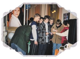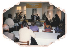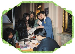 当观音使者来到捷克布拉格想要办一场弘法讲座时,刚巧联络人看到一份杂志上有一素食及礼品展二天后即将举行,从十一月十一日起为期三天。她找到主办单位询问,得到的回音意外地令人惊喜──恰好还有最后一个摊位。 因为临时参展,又是捷克同修第一次参加展览会,事先什么状况都不清楚;同修得到参展的通知,连夜赶做一些素食,手忙脚乱了一阵子。还好有一位师兄事先进了一批素哈姆,本来准备开快餐点心店用的,刚好拿来应急。素食展每天吸引了大批的民众,我们的摊位虽然在最角落的一个位置,然而师父美丽的法相吸引了无数有缘人前来。 素食展之后的座谈会( 十一月二十六日) 也来了不少人,反应热烈。