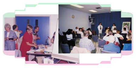伦登小中心,大约每个月在市立图书馆举办一次研讨会,并透过大众传播媒体发布消息。我们发现来自地方报纸及图书馆的反应较热烈。 我们首先简介世界会,以及说明及举办研讨会的目的。我们也解释师父如何资助自己,以及我们活动经费来源,由于免费教授打坐,观众常问到这问题。接着放师父简传的录影带,再介绍观音法门及方便法,然后播放师父讲经录影带,最后以问题讨论的方式结束。研讨会所介绍的内容深获观众肯定,所以这份内容已介绍给加拿大其它小中心作为研讨会使用。 许多人告诉我们,在看过师父录影带后,对师父的开示印象非常深刻。每次几乎都有许多来宾报名方便法,也有些人对印心有兴趣。由于越来越多人修方便法,我们就租了个社区活动中心,有许多活动如开放参观与庆祝会都在此举办。 经过多次研讨会后,我们从每次中学习并求改进,例如海报以较简单方式印刷,师父的彩色照片放得比较大,也以较好的品质印刷,使其看起来比较清晰而且吸引人。研讨会的公告,大部分发布在地方报章杂志,并且把研讨会的时间订于平日的傍晚而非周末。 开放参观我们也举办开放式参观活动,来介绍师父教理及素食。对于修方便法的人,这是个极佳的机会来学习与品尝美味素食佳肴,而对于其他人,则是他们认识师父的良机,通常他们都很讶异地了解到吃素并非如他们所想那么地困难,因为有这么多美味素食可食用,且容易烹调。 我们也邀请了方便法及同修的家人,一起庆祝各种节目,并在报纸上刊登广告邀请大众参加。过年后,我们也开放在每次方便法的共修后举办简短的素食烹饪课程,大家都很喜欢。课后,我们也打包一些食物让同修及准同修带回去分享给家人。 展览会