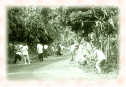【台中讯】为了配合篰子坑产业道路修整工作,台中小中心于十一月二十二日星期日下午集合了同修清扫中心附近的产业道路。同修们不论男女老少,加上一些当地居民,大家不是荷锄就是手持镰刀,在道路的两旁勤快的将原本杂草丛生、脏乱坍方的路面整理得干干净净。