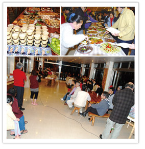 【台北讯】坐落于台北市内湖区的丽湖国小是一所迎合开放精神规划的新学园,敦厚笃实的洪天乙校长为了向全校辛勤耕耘的教职员工表达敬爱与感谢,特别延请清海无上师世界会台北小中心前来准备一场养生蔬食飨宴。 黄金5年(2008年)1月22日,世界会会员们带着各式食材来到丽湖国小,以爱心准备了20道丰盛可口的美食佳馔。一位中医师同修向大家解说素食为个人与地球带来的巨大助益。当校长宣布餐会开动,大家都迫不及待地排队拿取各式美食,赞叹之声不绝于耳。来宾中西湖国中李校长及新湖国小廖校长都表示,他们也想筹办这样的素食餐会。