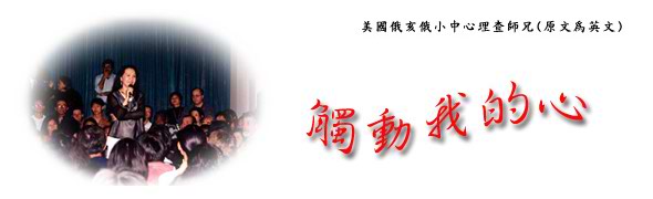 在打禅的最后一天,当师父穿过人群要离开静坐大殿时,她温柔地摸摸我的头。使我的灵性体验达到最高点。我现在还能感受到一股深深的光辉及和平之感。长堤的禅五对我意义非凡,她无限的爱心和慈悲心触动了我的心。