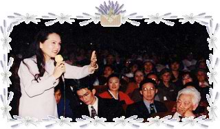 师父本来可以待在某个地方静养,(听说她不久前才刚动过手术)然而,她却坐了二十多小时的飞机,通过重重的美国海关来看我们,还加上来自新闻媒体的压力。师父没有休息,直接从机场到我们打坐的地方来加持我们,和我们说话。当她前前后后,不断的在我们之间来回穿梭时,让我们沐浴在强烈的温暖与爱力中。她是如此地关怀我们,充满耐心与包容,当然还有-如此的美丽。她一一的回答了我们的问题和藏在内心说不出的需求。她宠我们,但只要一发觉我们有些偏离正道,则会厉声谴责…,就如慈母一般。