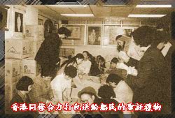 十二月十一日收到消息说:师父很挂念难民营内的悠乐船民,希望送一些圣诞礼物给他们并查问一下他们有什么需要。在星期天,联同几位悠乐同修进入万宜船民营,查询营内同修的需要。进入营后,见到了隔别了两年的同修,心里马上充满喜悦,从一些修观音法门很久的出家师处,感觉到祥和、舒服的气氛。另看到了一些两年前修方便法,现已修观音法门一年左右的同修,脸上消失了那些怪怪的、凶凶的气氛,还有一些新印心的同修,眼睛里也闪着光芒,心里更肯定观音法门是能完全把我们内外都改进的法门。